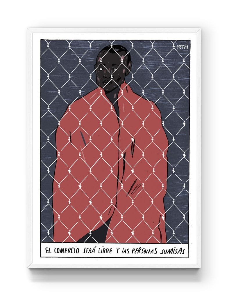 Yeyei Gómez es uno de los talentos creativos más interesantes del panorama actual. Ilustradora por vocación y por herencia, pero sobre todo por convicción, en las magníficas creaciones de Yeyei la sátira y el sarcasmo son el indiscutible protagonista. Entre sus proyectos destacan exposiciones como «Mentira Cochina» en la Galería Empírica en Granada; trabajos para medios como eldiario.es o El Salto; y su participación dentro del programa de residencias REFEST que sigue las rutas de refugiados e inmigrantes en Europa.En noviembre publicó «Naufragio Universal» (Premio Injuve 2017), un libro de viñetas dibujadas desde la ironía para hablar de los medios de comunicacion, los sistemas politicos, los derechos humanos y en general paradojas de la sociedad actual, al cual pertenece la imagen cedida. Una creadora sin igual.